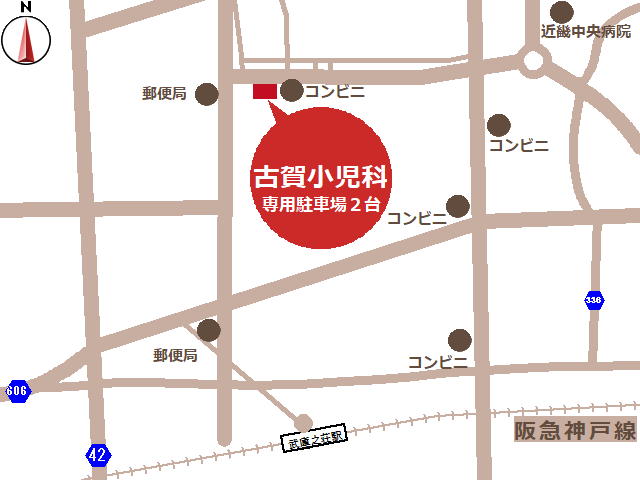 診療所名 古賀小児科 代表者 古賀 亮一 所在地 〒661-0035兵庫県尼崎市武庫之荘7-1-25 設立日 1994年5月24日 電話番号(FAX番号) 06-6433-0415 従業員数 4名(医師1名、助産師2名、受付・診療介助1名) アクセス 電車の場合 阪急神戸線武庫之荘駅北改札を出て、北へ約15分。 自動車の場合 ※駐車場2台 院内風景 周辺地図